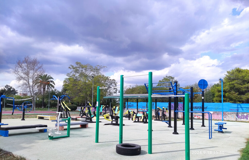 - Ένα υπαίθριο γυμναστήριο εξοπλισμένο με ειδική σειρά οργάνων για χρήση από άτομα με κινητικά προβλήματα.